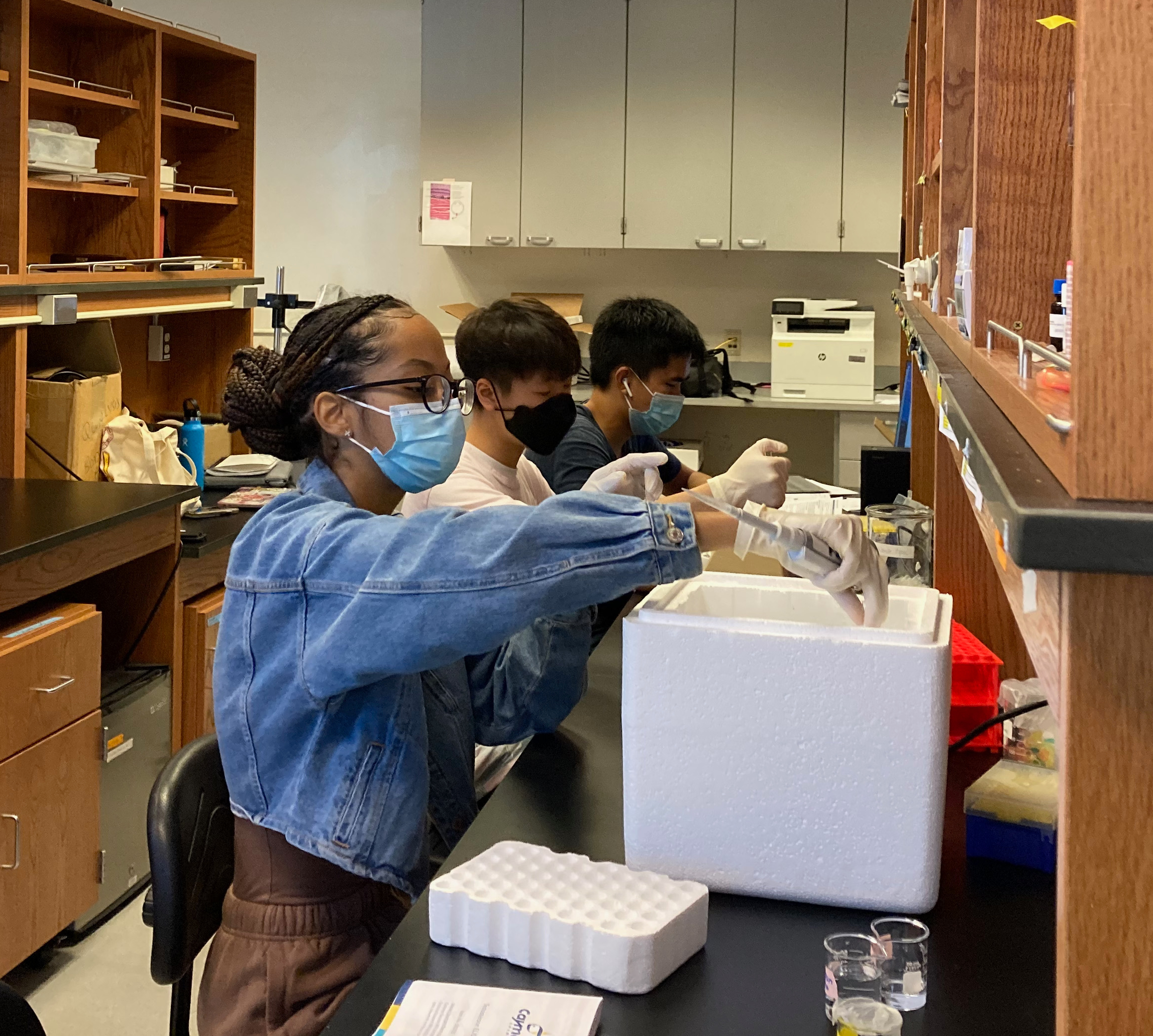 We were officially back in the lab this summer – in person – with Bela, Deijah, and Jess! Deijah pioneered a new method for tagging tiny and young juvenile fish. Bela and Jess analyzed a lot of hormone samples and behavior videos to integrate with our neurotranscriptomic data.