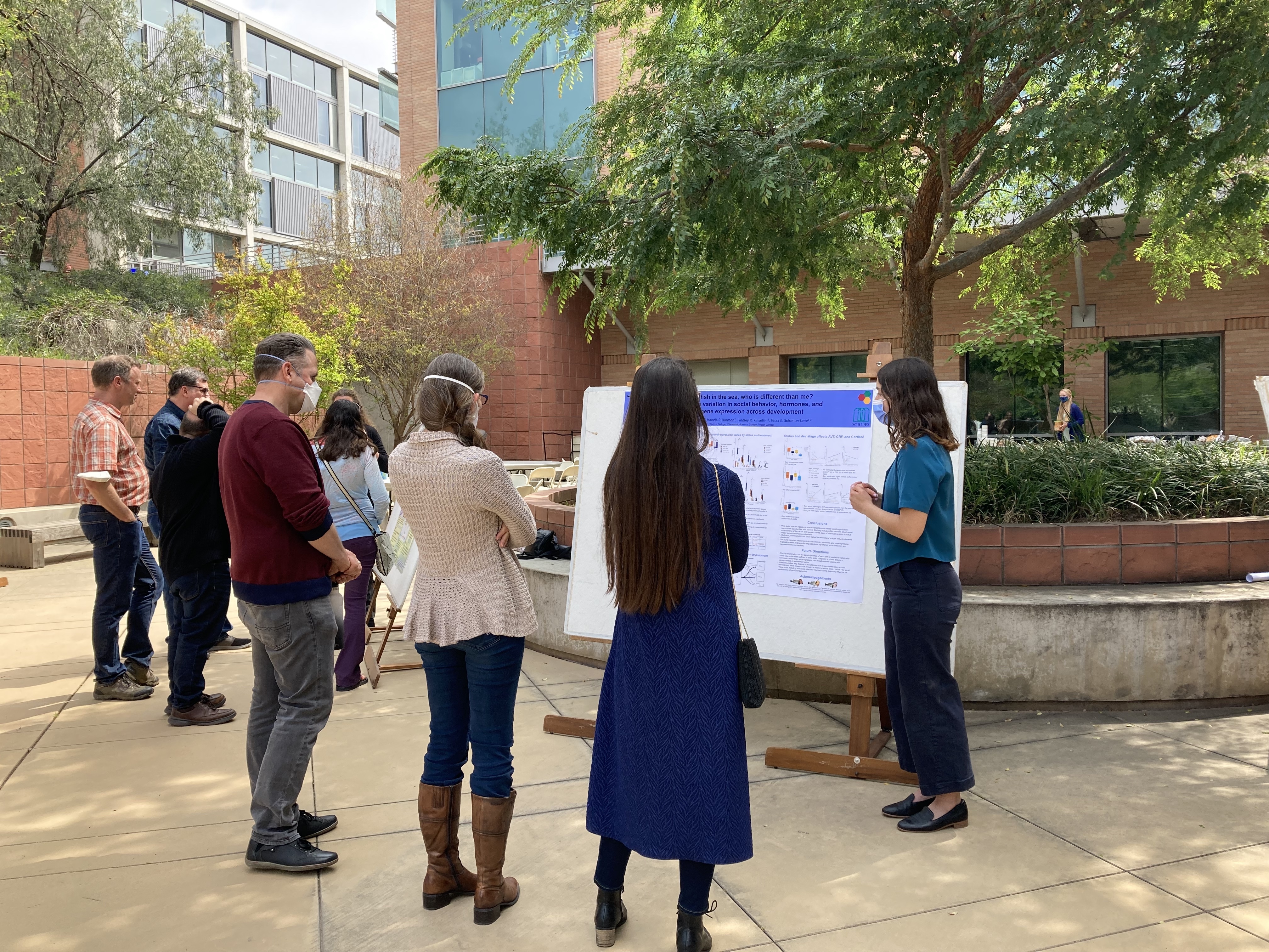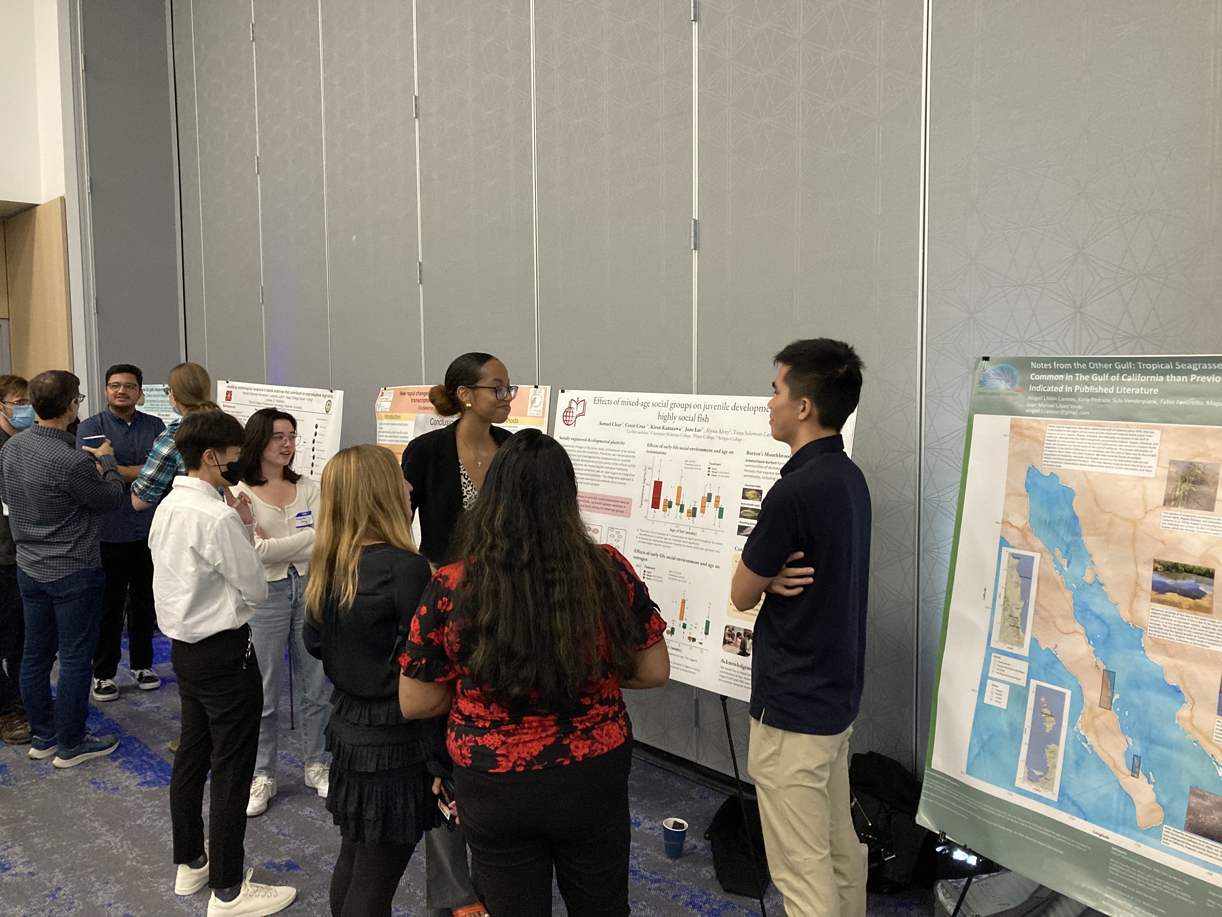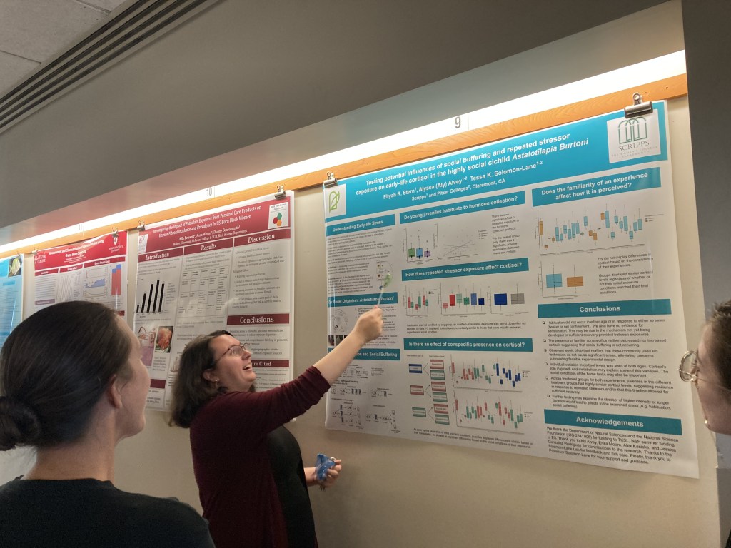 Congratulations to Jess on her spark talk and poster at the Southern California Animal Behavior Conference! Her poster (“Of all the fish in the sea, who is different than me? Status-driven variation in social behavior, hormones, and neural gene expression across development”) was busy the whole session. Lab mates Aly and Sam also attended, and we all learned about very cool science with local animal behavior researchers.
