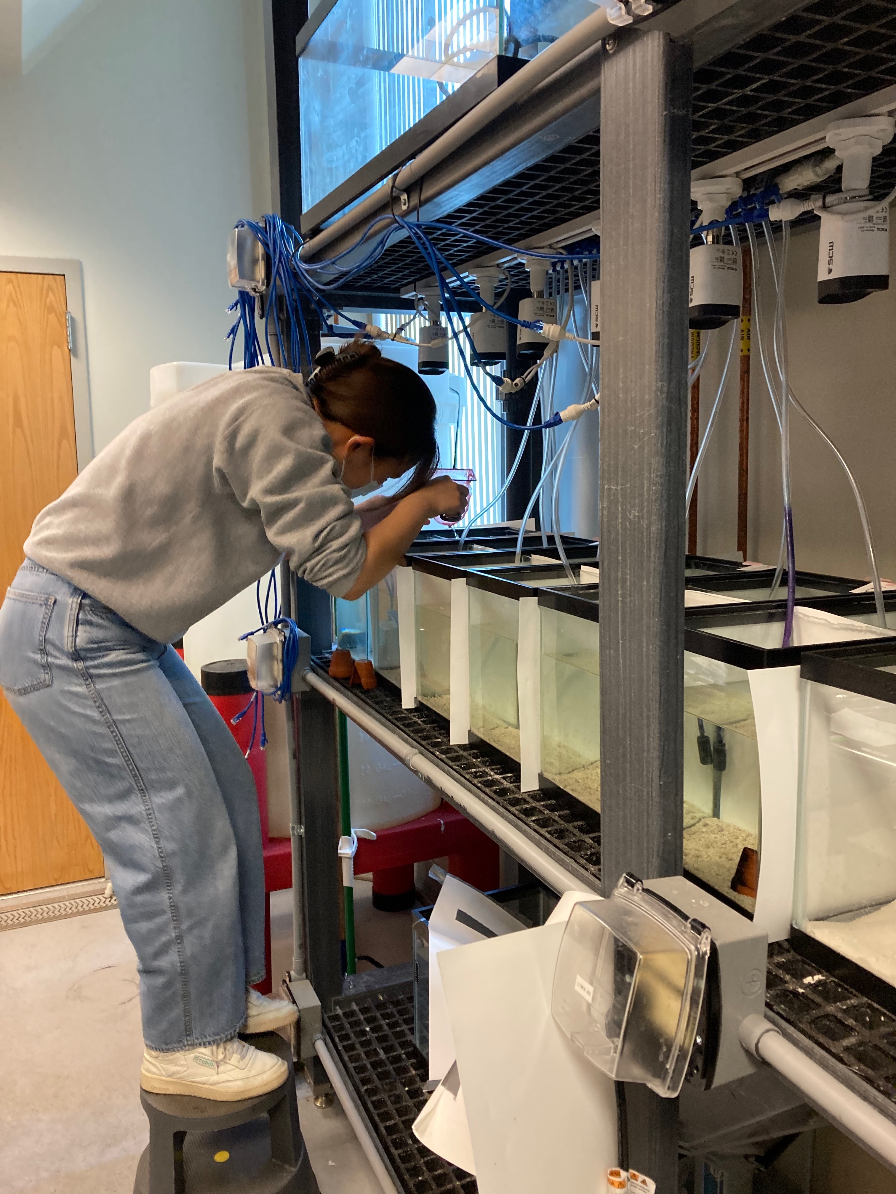 Cam’s senior thesis project has officially launched! With Cam on Zoom and me in the lab, we identified 72 juveniles from this table of ~166 fish to go into 12 tanks. Each tank has a small group of same-sized fish, ranging from large to small across the tanks. I can’t wait to see how they grow and how their hormones change in the next 3 months.