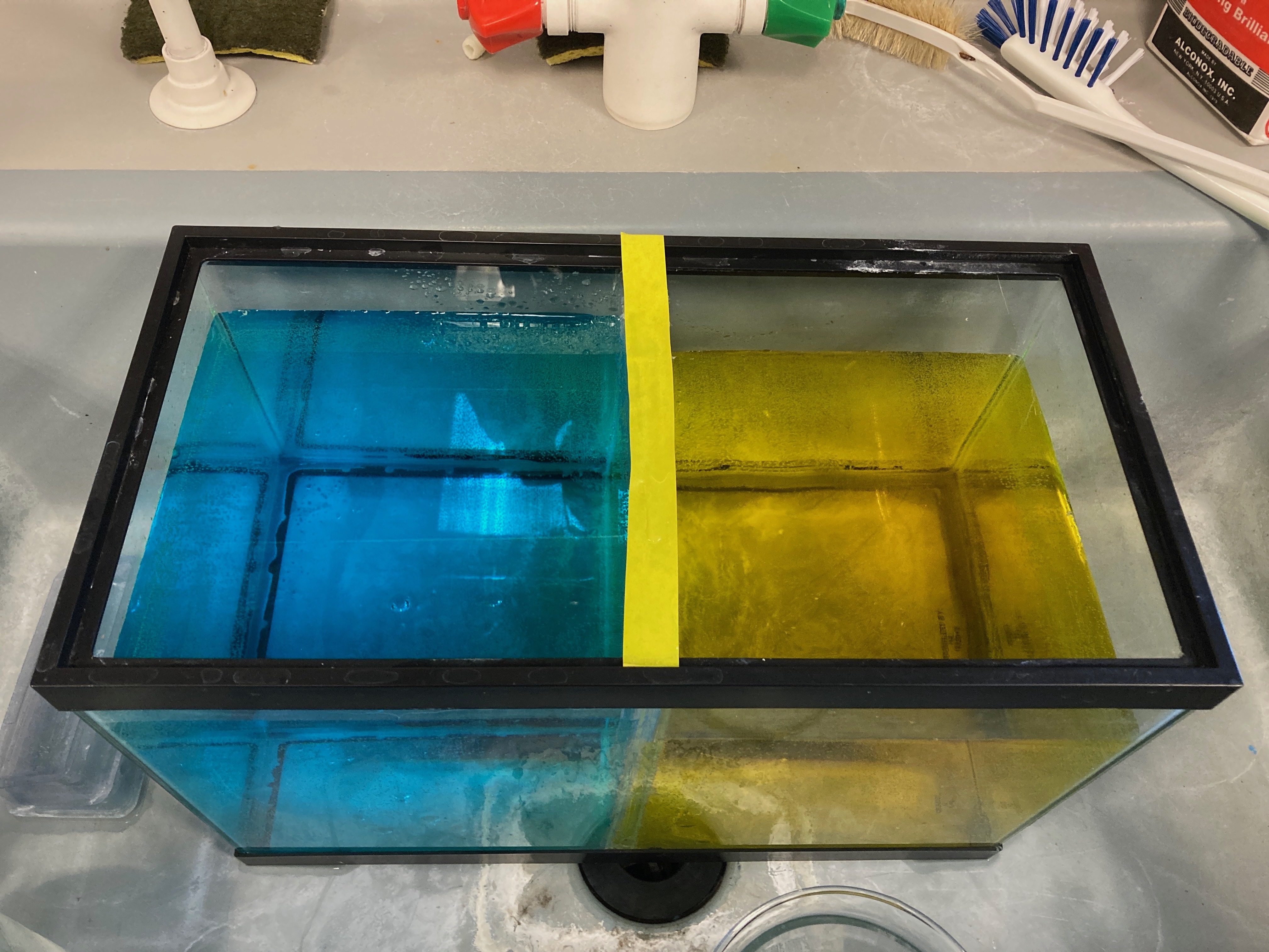 Kiren’s new experiment required some tank construction (the food coloring shows the new barriers are water-tight), along with her stellar skills to inject into the brain of juvenile fish. Stay tuned for how this project develops!
