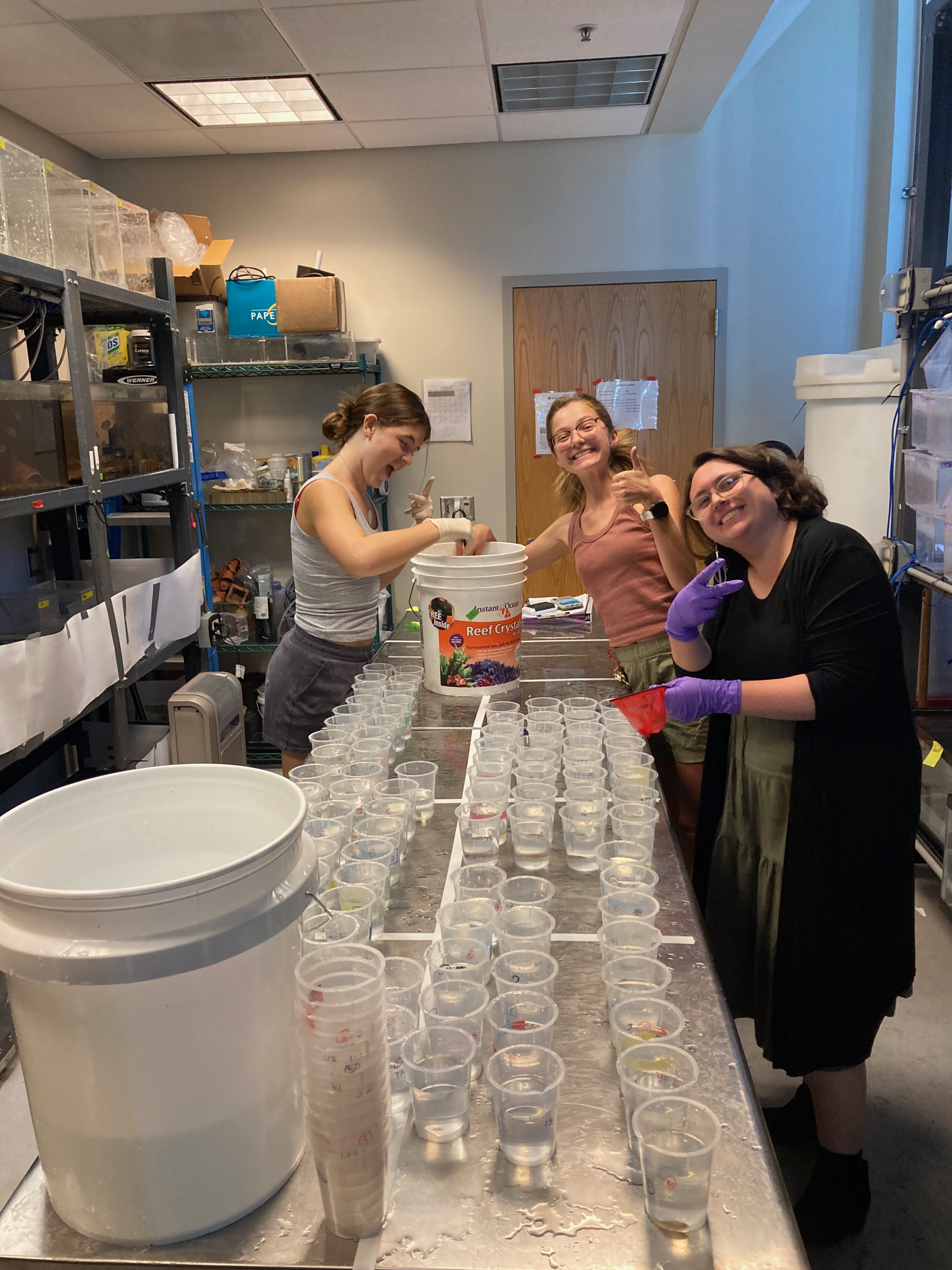 We had an incredibly productive and fun summer in the lab with Aly, Blake, Cristi, Emma, June, Kiren, and Sam! Among other things, we collected and analyzed a lot of water-borne hormone samples, including to measure cortisol, testosterone, and estradiol in fry (baby fish) less than 1 week old.