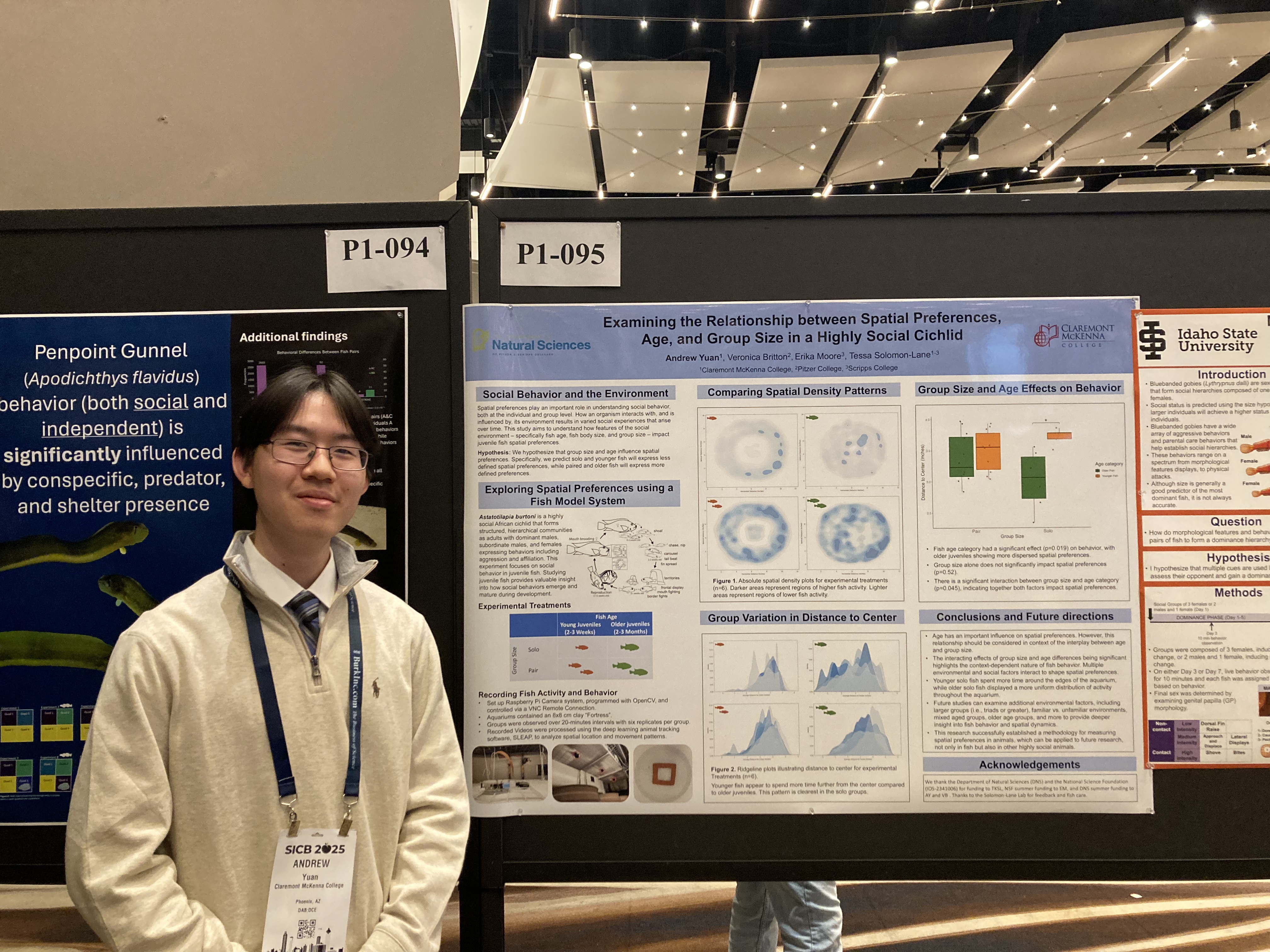 Congratulations to seniors Aly Alvey and Kiren Kanazawa for great presentations at the Southern California Animal Behavior Conference, hosted at UCLA this year! Aly gave a talk on the stress responses of juvenile fish less than a week old. Kiren presented a poster on the effects of dopamine manipulation on juvenile behavior and social dynamics.