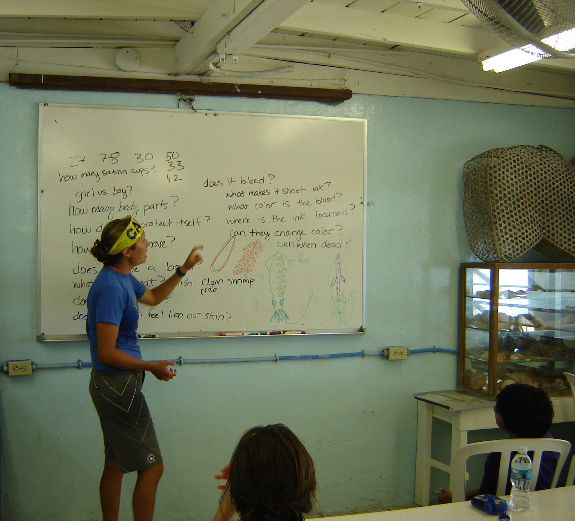 Preparing for a squid dissection at the Newfound Harbor Marine Institute (Big Pine Key, FL) by making a list of student-generated questions to answer.